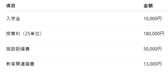 ネットコースの学費はおおむね同水準で、**年間約25万円前後(就学支援金適用前)**が目安になります。