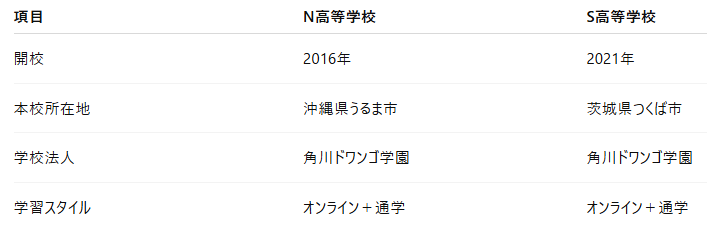 N高は沖縄本校、S高は茨城本校という違いがありますが、実際には全国の施設でスクーリングが行われることもあります。
